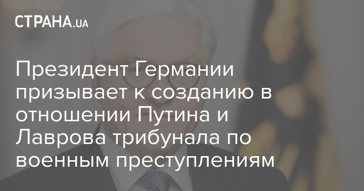 Президент Германии Франк-Вальтер Штайнмайер призывает к созданию в отношении президента России Владимира Путина и министра иностранных дел Сергея Лаврова трибунала по военным преступлениям.