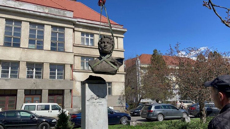 В Ужгороде демонтировали памятник Александру Пушкину, на котором написали Джо Дассен