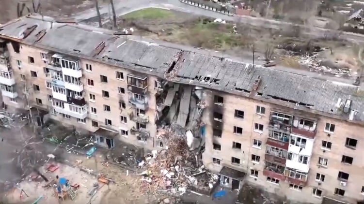 Там весь месяц вражеской оккупации были обстрелы - это явно видно на видео с дрона.