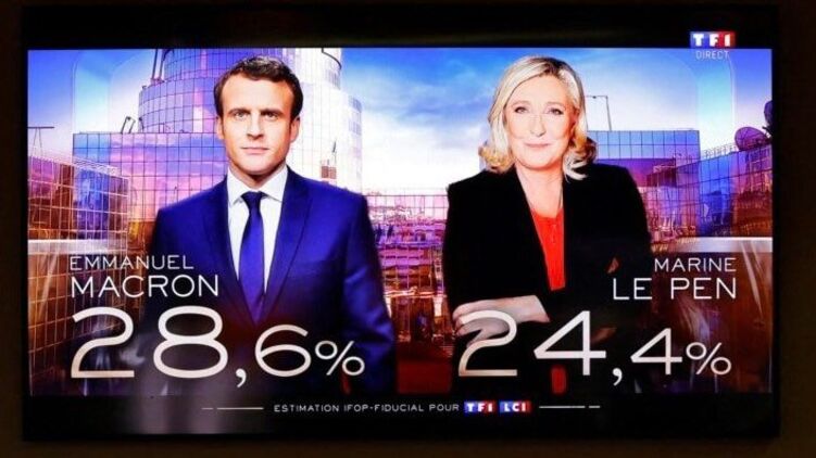 По данным экзитпола, в первом туре с 28% победил Эммануэль Макрон, обогнав свою главную конкурентку Марин Ле Пен, которая взяла около 23%.