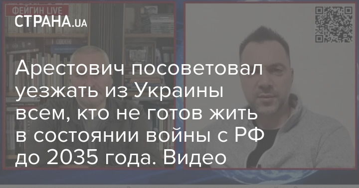 Советик главы ОП Алексей Арестович, который заявлял, что война с РФ продлится до 2035 года, советует тем украинцам, кто не готов столько лет жить в состоянии войны, уезжать из страны.