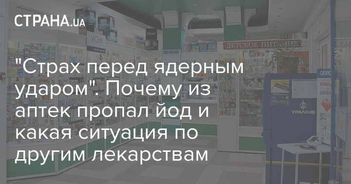 В последние недели начали разметать препараты йода, что связано как со страхами относительно "ядерного удара" со стороны России, так и с опасениями выброса радиации на ЧАЭС. В Киеве и Киевской области люди начали скупать йод именно по последней причине. В итоге во многих аптеках не осталось вообще никаких препаратов с йодом: от спиртовых растворов и заканчивая диетическими добавками и таблетками с этим элементом.