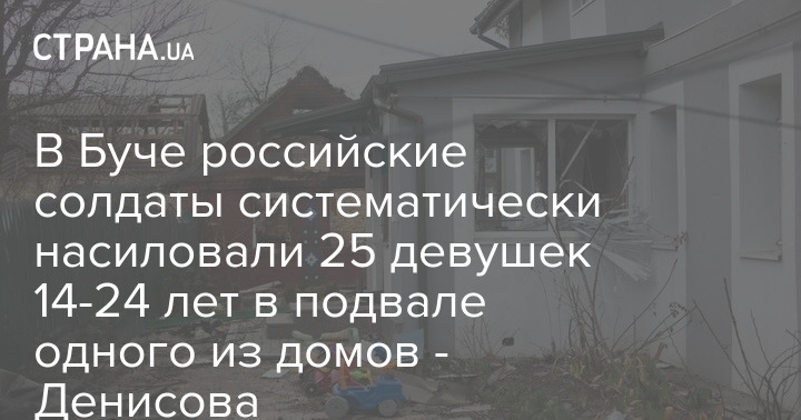 Омбудсмен Людмила Денисова сообщила, что во время оккупации Бучи войсками РФ в подвале в одном из домов около 25 девушек и женщин в возрасте от 14 до 24 лет систематически подвергались изнасилованиям.
