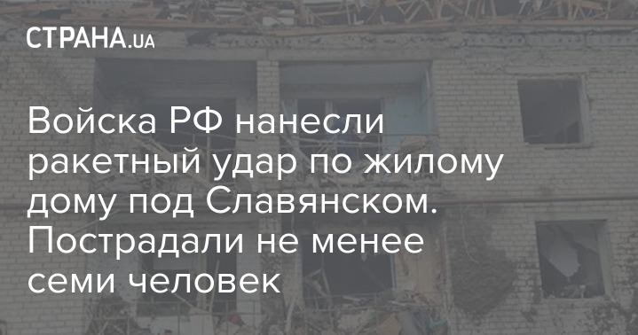 Под Славянском российские войска нанесли ракетный удар по жилому дому в населенном пункте Черкасское. Ранены не менее семи человек.