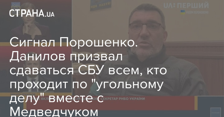 Сигнал Порошенко. Данилов призвал сдаваться СБУ всем, кто проходит по "угольному делу" вместе с Медведчуком