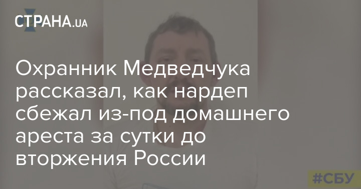Служба безопасности Украины опубликовала показания охранника народного депутата Виктора Медведчука Андрея Тарана. По его словам, политик уехал из своего дома в столице Украины за день до вторжения России.