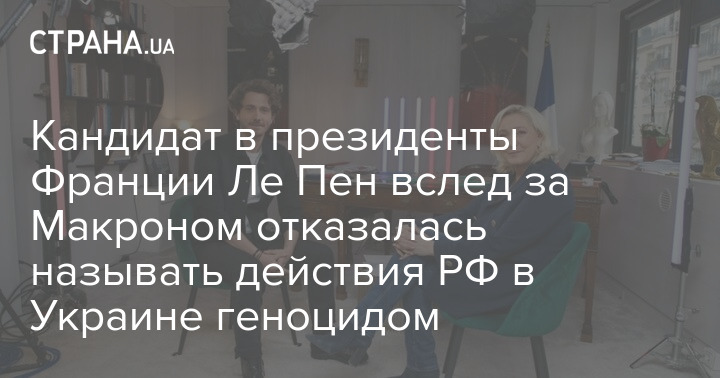 Кандидат в президенты Франции Марин Ле Пен вслед за своим конкурентом на выборах Эммануэлем Макроном отказалась называть войну в Украине геноцидом.