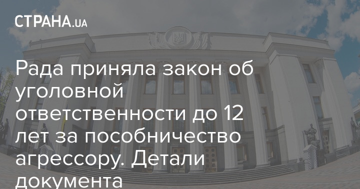 На заседании 14 апреля Верховная Рада приняла закон о введении уголовной ответственности до 12 лет тюрьмы за пособничество государству-агрессору. Ранее документ был возвращен президентом с правками.
