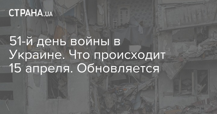 Сегодня пятница, 15 апреля, а также 51-й день полномасштабного вторжения России в Украину. Российские войска приступают к решающей битве за Донбасс, пытаются захватить Попасную и Рубежное, продолжают наносить ракетно-бомбовые удары по инфраструктуре населенных пунктов страны, обстреливая в том числе Киев, Житомир, Ивано-Франковск, населенные пункты Харьковской и Днепропетровской областей.