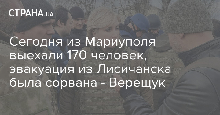 Сегодня из Мариуполя выехали 170 человек, эвакуация из Лисичанска была сорвана - Верещук