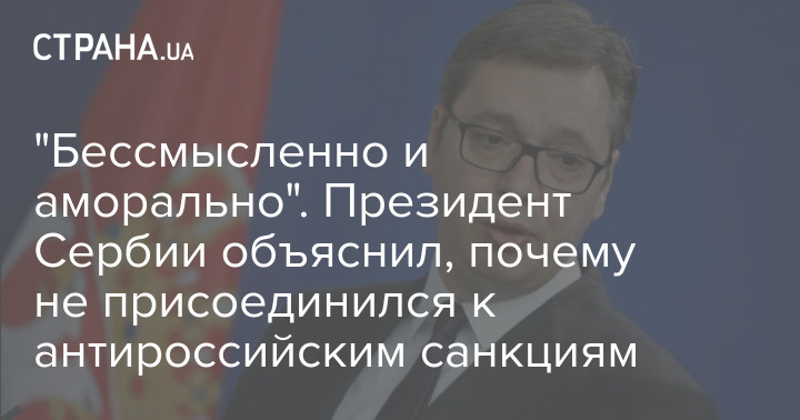 Президент Сербии Александар Вучич назвал любые санкции бессмысленными и аморальными. В связи с этим, по его словам, страна не присоединилась к антироссийским ограничительным мерам.