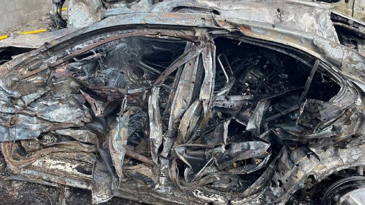 Повреждены или уничтожены около 40 автомобилей. От ударной волны разбиты окна в отеле поблизости, в котором живут эвакуированные украинцы.