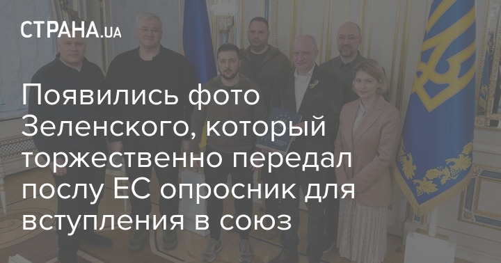 Посол Европейского союза в Украине Матти Маасикас опубликовал фотографии, на которых Владимир Зеленский официально передал Евросоюзу заполненный опросник, необходимый для того, чтобы страна официально продолжила свою европейскую интеграцию.