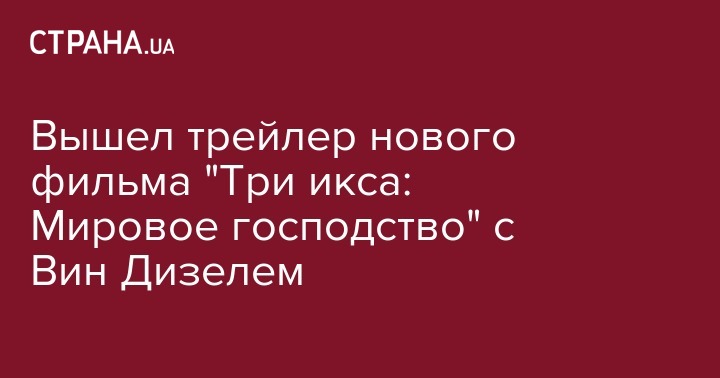 Киностудия Paramount Pictures обнародовала трейлер нового боевика с Вин Дизелем "Три икса: Мировое господство". Видеоролик появился на официальном канале киностудии на YouTube.