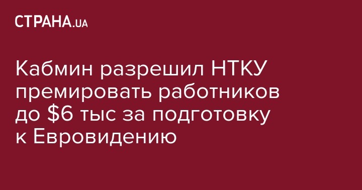 Кабинет Министров разрешил Национальной телекомпании выдавать премии работникам, которые принимают участие в подготовке международного конкурса "Евровидение-2017" в размере 150 тыс. грн в месяц. Соответствующее постановление было принято 2 ноября, передают Украинские новости.