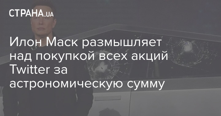 Американский предприниматель Илон Маск изучает возможность подачи заявки на тендер по покупке всех размещенных акций компании Twitter.