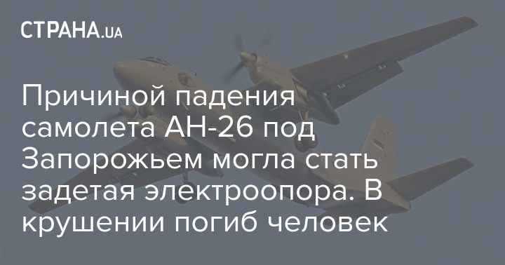 Причиной падения самолета АН-26 под Запорожьем могла стать задетая электроопора. В крушении погиб человек