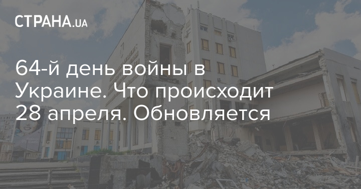 В четверг, 28 апреля, в Украине продолжается 64-й день войны. Обстрелы продолжаются в населенных пунктах Харьковской, Днепропетровской, Херсонской, Одесской и Запорожской областях, однако самые активные бои происходят на востоке и юге страны.
