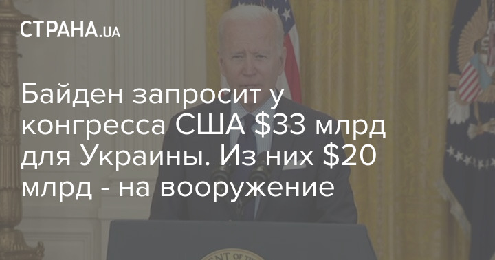 Байден запросит у конгресса США $33 млрд для Украины. Из них $20 млрд - на вооружение