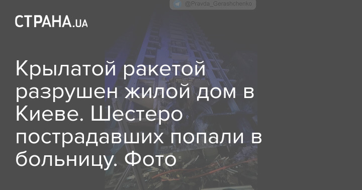 Крылатой ракетой разрушен жилой дом в Киеве. Шестеро пострадавших попали в больницу. Фото