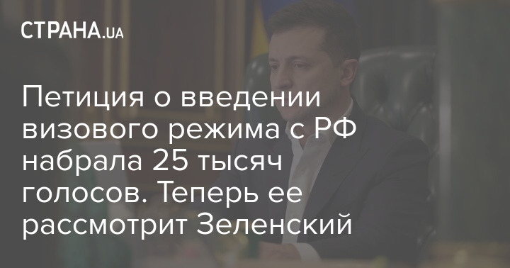 Петиция о введении визового режима с Россией на сайте президента Украины набрала 25 тысяч голосов - теперь ее должен рассмотреть Владимир Зеленский.