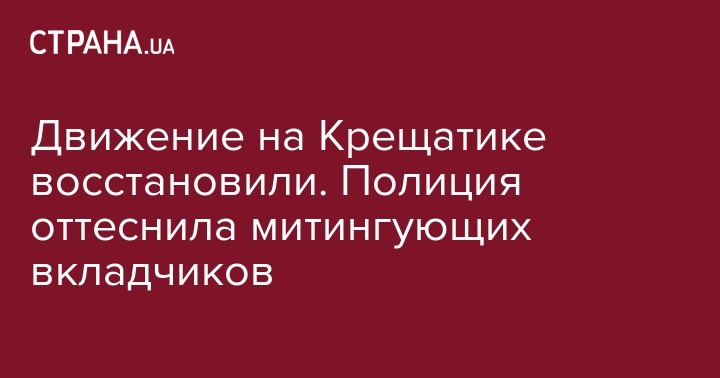 На центральной улице страны - Крещатике - только что полиция восстановила автомобильное движение. Для этого полисменам совместно с бойцами Нацгвардии пришлось оттеснить митингующих вкладчиков обанкротившихся банков на обочину улицы. Об этом сообщает корреспондент "Страны" с места событий.