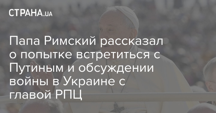 Папа Римский рассказал о попытке встретиться с Путиным и обсуждении войны в Украине с главой РПЦ