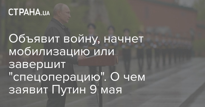 Агентство CNN сегодня заявило, что Путин может официально объявить войну Украине 9 мая. Об этом журналистам сообщил высокопоставленный чиновник со ссылкой на данные разведслужб.