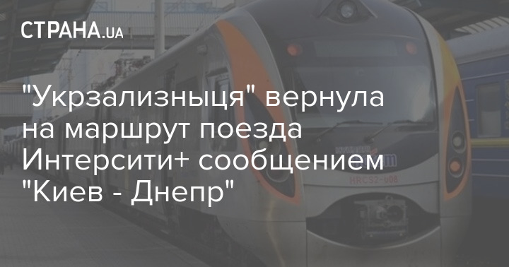 "Укрзализныця" вернула на маршрут поезда Интерсити+ сообщением "Киев - Днепр"