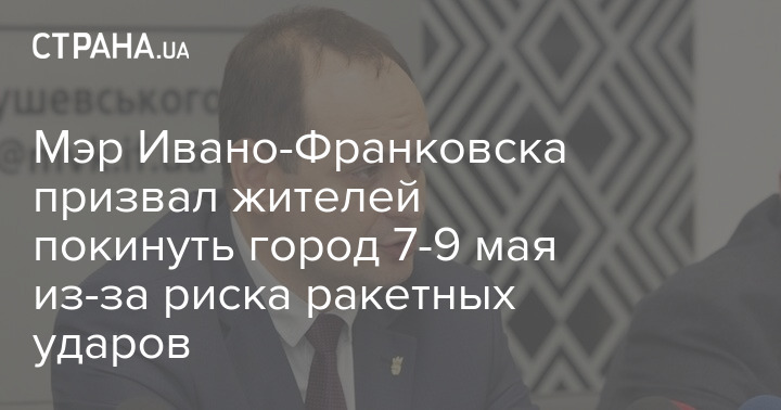 Мэр Ивано-Франковска Руслан Марцинкив призвал горожан выехать за город 7-9 мая при возможности. Он предупредил, что в эти даты может быть ракетный удар по городу. Об этом городской города сказал в видео, опубликованном на Facebook.