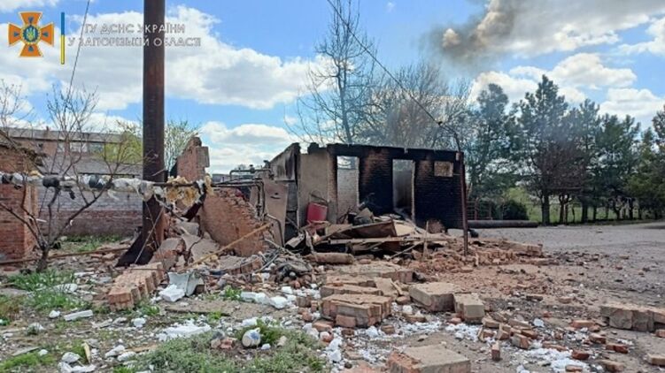 Результат обстрелов частных домов в Орехове Запорожской области 29 апреля. Фото: ГосЧС