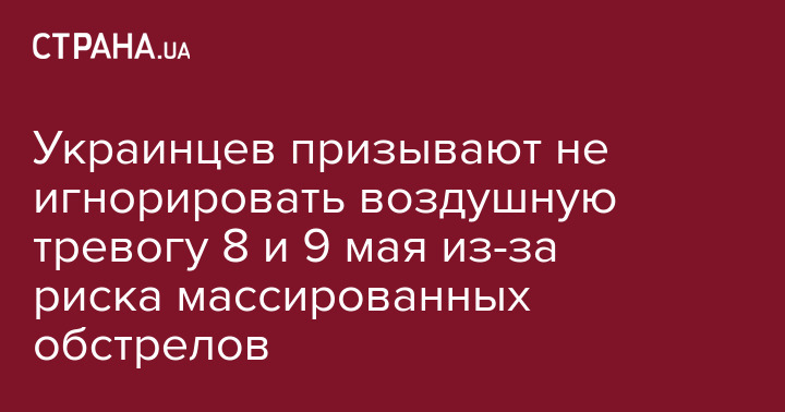 Украинцев призывают не игнорировать воздушную тревогу 8 и 9 мая из-за риска массированных обстрелов