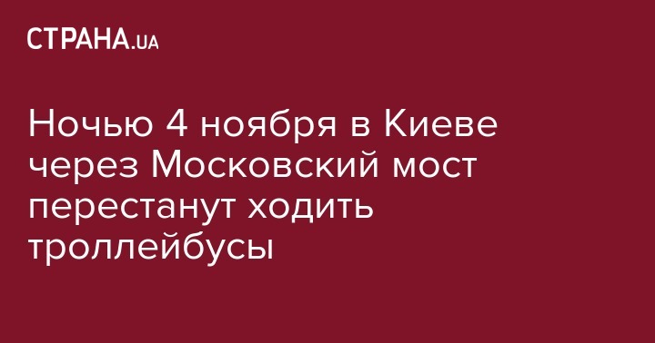 В столице Украины, в ночь с четверга на пятницу или с 3 на 4 ноября соответственно, будет приостановлено движение троллейбусов, которые курсируют через Московский мост, передает пресс-служба КГГА.