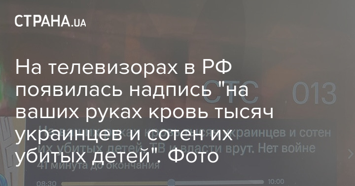 На российских телевизорах сегодня с утра, 9 мая, появилась надпись "на ваших руках кровь тысяч украинцев и сотен их убитых детей".