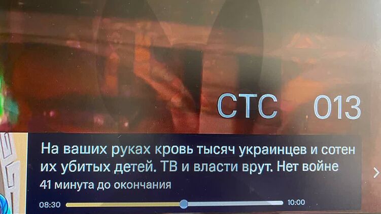 Собчак опубликовала фото, как на российских телевизорах начали показывать надписи про войну в Украине. Фото: Телеграм