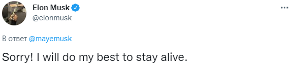 Маск извинилcя и добавил: "Я сделаю все возможное, чтобы остаться в живых".