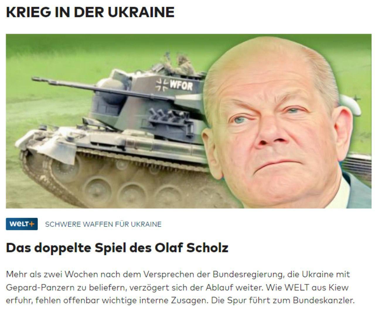 Welt пишет о том, что немецкое правительство не проинформировало Киев, что речь шла о том, что правительство Украины должно заказать Gepard у KMW. Об этом Welt сообщает со ссылкой на источник в украинских правительственных кругах. Руководство Украины ориентировалось на то, что получит установки от германского правительства.
