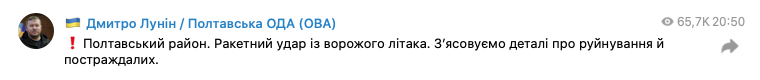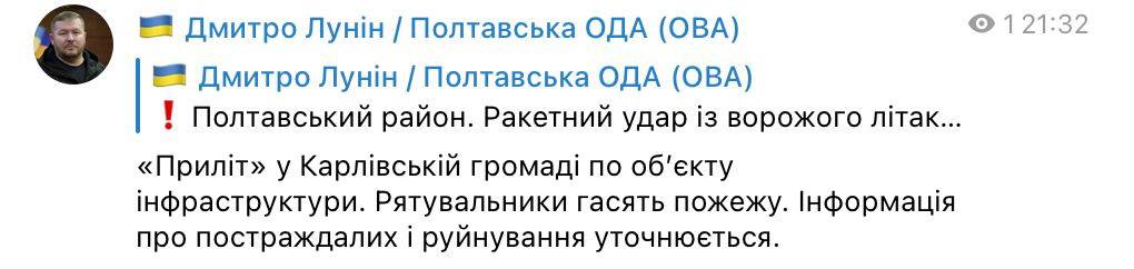 Армия России нанесла удар по Полтавской области ракетами с самолета - губернатор