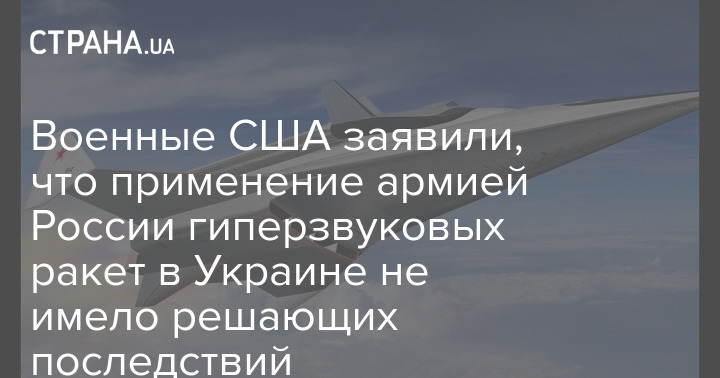 Председатель Объединенного комитета начальников штабов США генерал Марк Милли заявил, что применение Россией гиперзвукового оружия в Украине не имело "действительно значительных или решающих последствий".