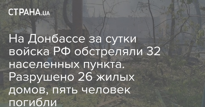 На Донбассе за сутки войска РФ обстреляли 32 населенных пункта. Разрушено 26 жилых домов, пять человек погибли