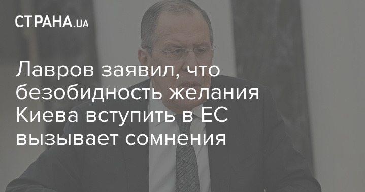Глава МИД РФ Сергей Лавров считает, что безобидность желания Киева вступить в ЕС "вызывает сомнения на фоне превращения данного объединения в агрессивного игрока". Об этом пишет "РИА Новости".