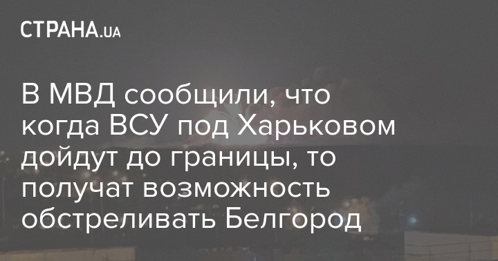 В МВД сообщили, что когда ВСУ под Харьковом дойдут до границы, то получат возможность обстреливать Белгород