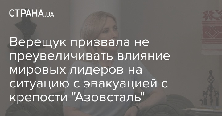 Верещук призвала не преувеличивать влияние мировых лидеров на ситуацию с эвакуацией с крепости "Азовсталь"