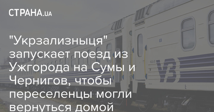 "Укрзализныця" в ближайшее время запустит поезд Чернигов-Сумы-Ужгород, чтобы как переселенцы. так и беженцы из этих северных областей смогли вернуться домой с запада.