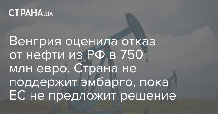 Венгрии понадобится 750 миллионов евро для отказа от российской нефти. Страна не может поддержать текущий пакет санкций, пока Брюссель не предложит решение.