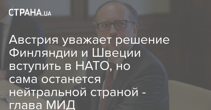 Австрия уважает решение Финляндии и Швеции вступить в НАТО, но сама останется нейтральной страной - глава МИД