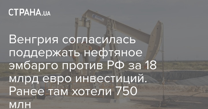 Венгрия заявила, что может поддержать эмбарго на российскую нефть за инвестиции в их страну для переоборудования. Однако если раньше инвестиции оценивались в 750 млн евро, то сейчас они выросли до 18 миллиардов.