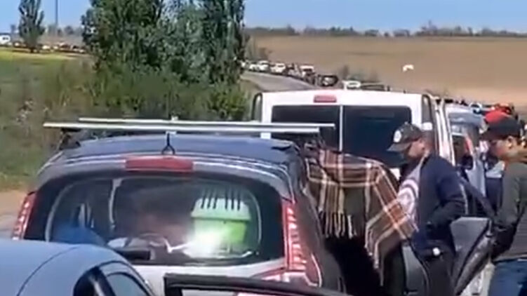 На выезде из Херсонской области на подконтрольную Украине территорию страны застряли тысячи машин местных жителей.
