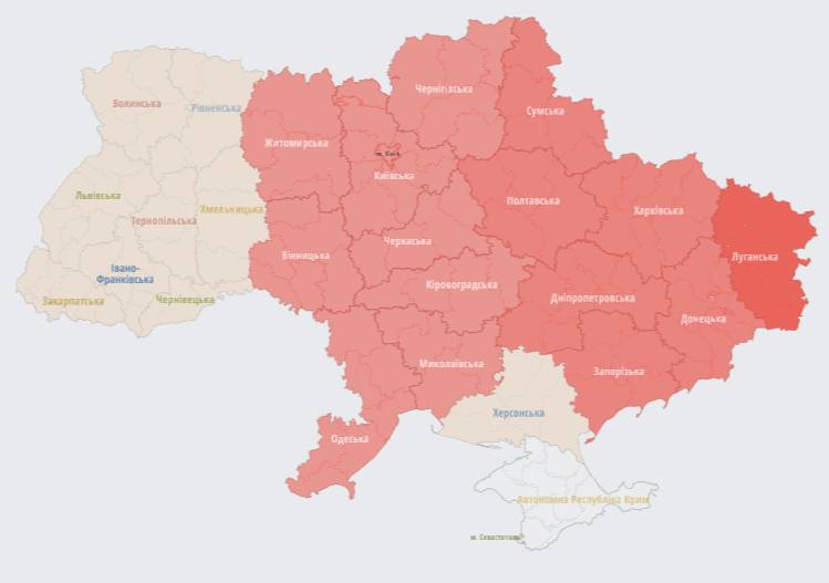 20.50 Вновь воздушная тревога на территории всей Украины.