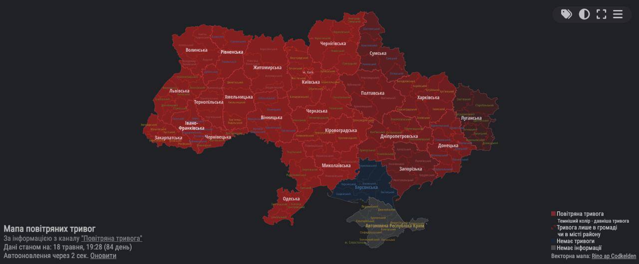 В среду, 18 мая, идет уже 84-й день с момента полномасштабного вооруженного вторжения России в Украину.